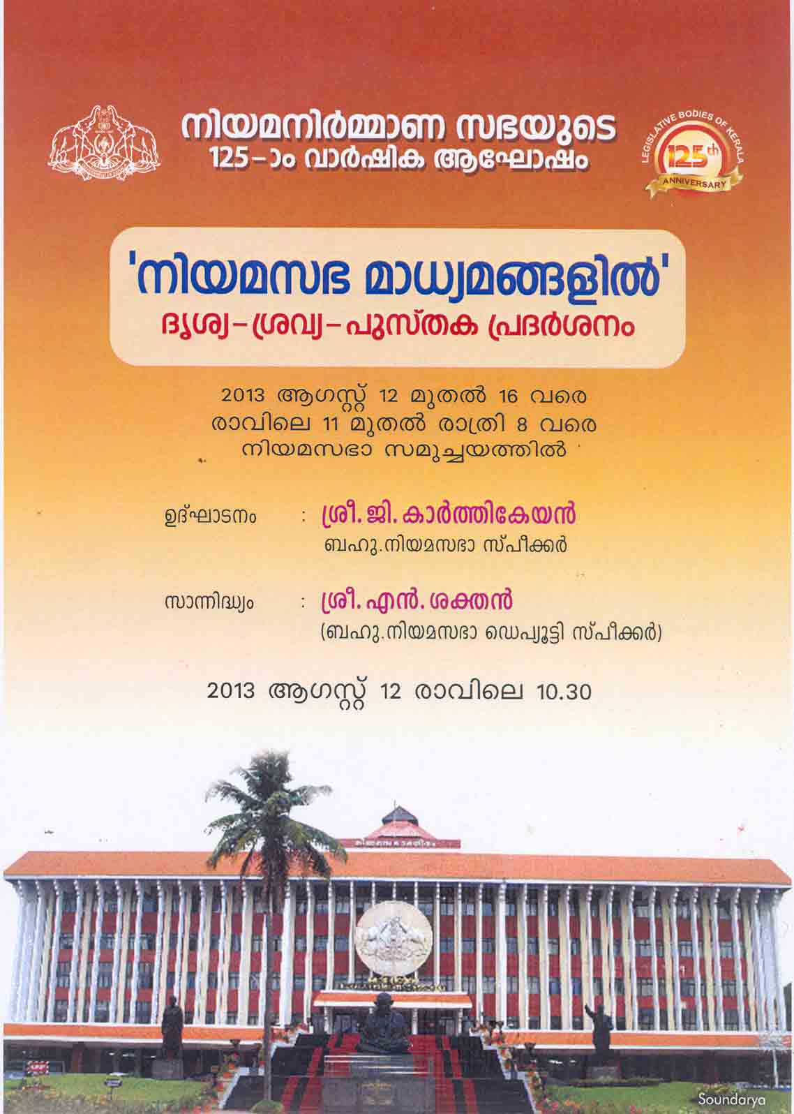 You are here: 125th Anniversary of Legislative Bodies of Kerala - Exhibition on "Legislature in Media" on 12-08-2013