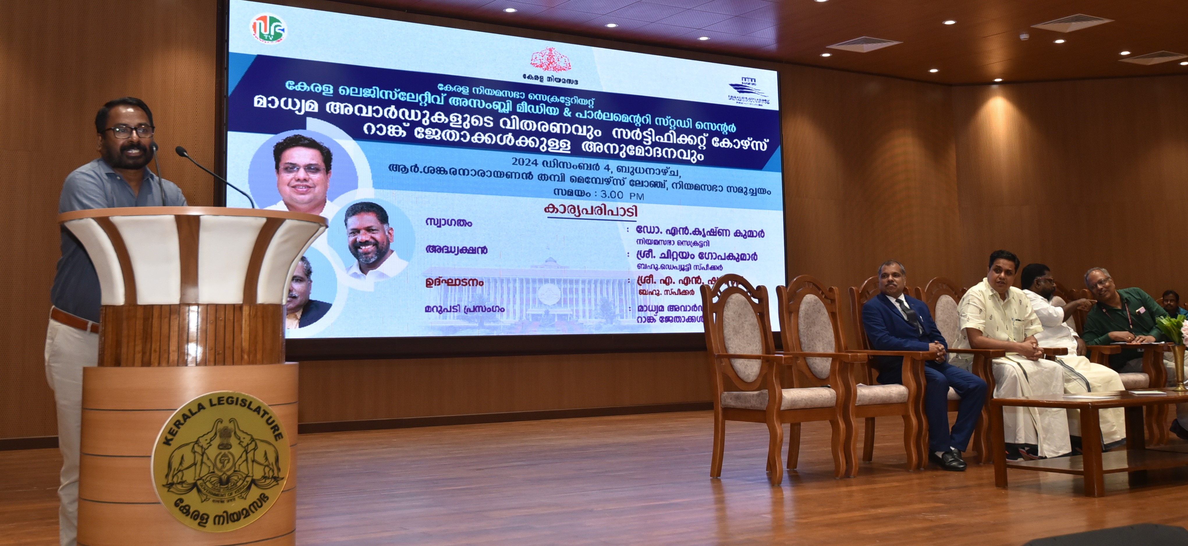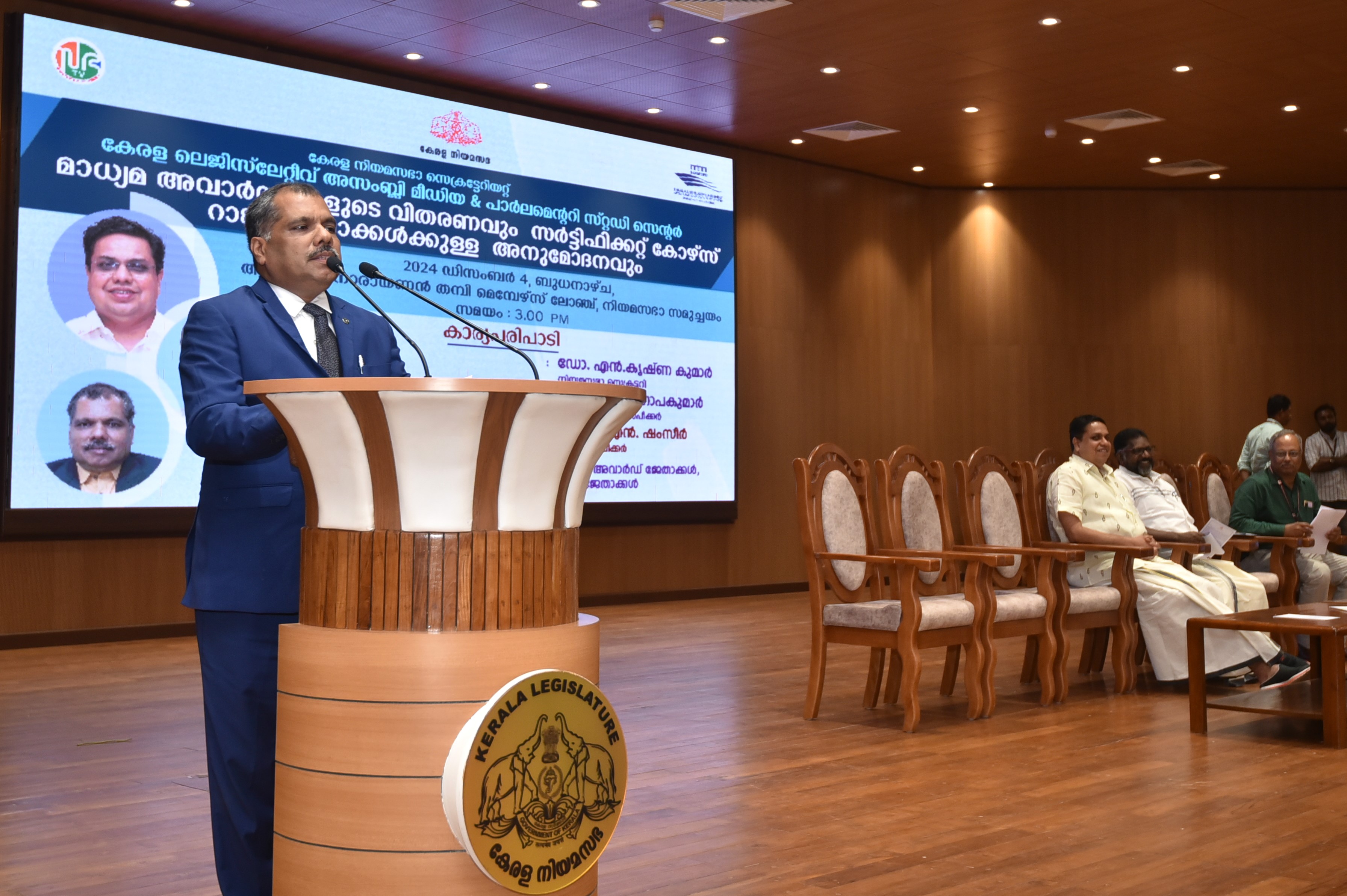 നിയമസഭാ മാധ്യമ അവാർഡുകളുടെ വിതരണവും സർട്ടിഫിക്കറ്റ് കോഴ്സ് റാങ്ക് ജേതാക്കൾക്കുള്ള അനുമോദനവും- 05-12-2024